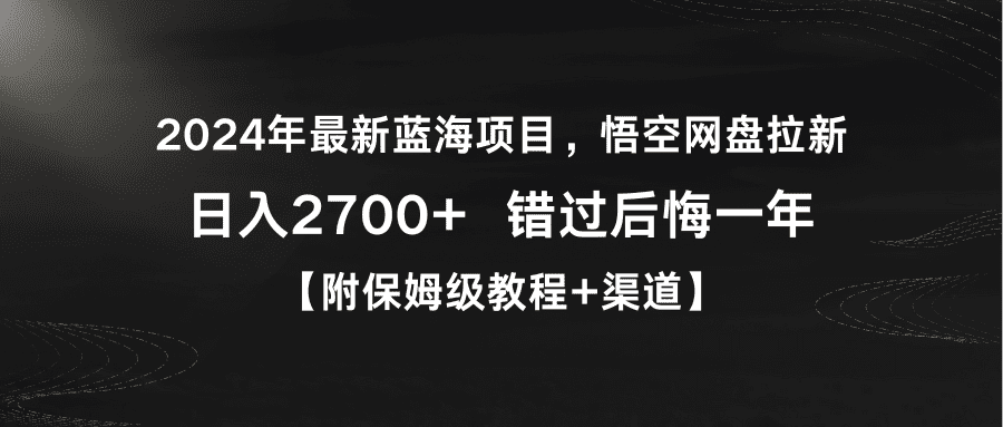 大家好今天给大家带来的项目是【2024年最新蓝海项目,悟空网盘拉新,日入2700+错过后悔一年【附保姆级教程+渠道】