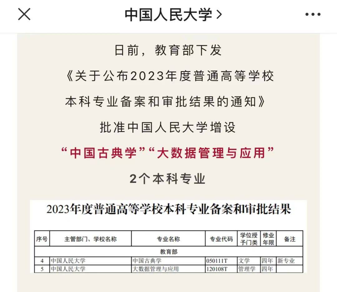 近日,教育部公布了2023年度普通高等学校本科专业备案和审批结果,并发布2024年普通高等学校本科专业目录。