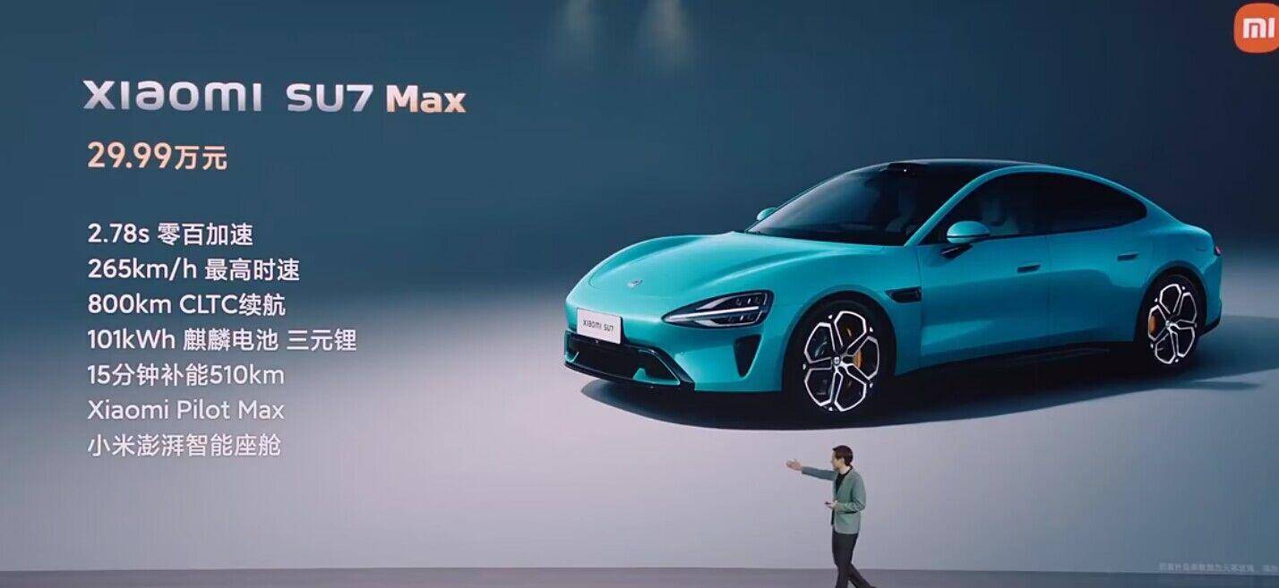 小米SU7 Max版(高性能四驱超长续航高阶智驾版)售价29.99万元。