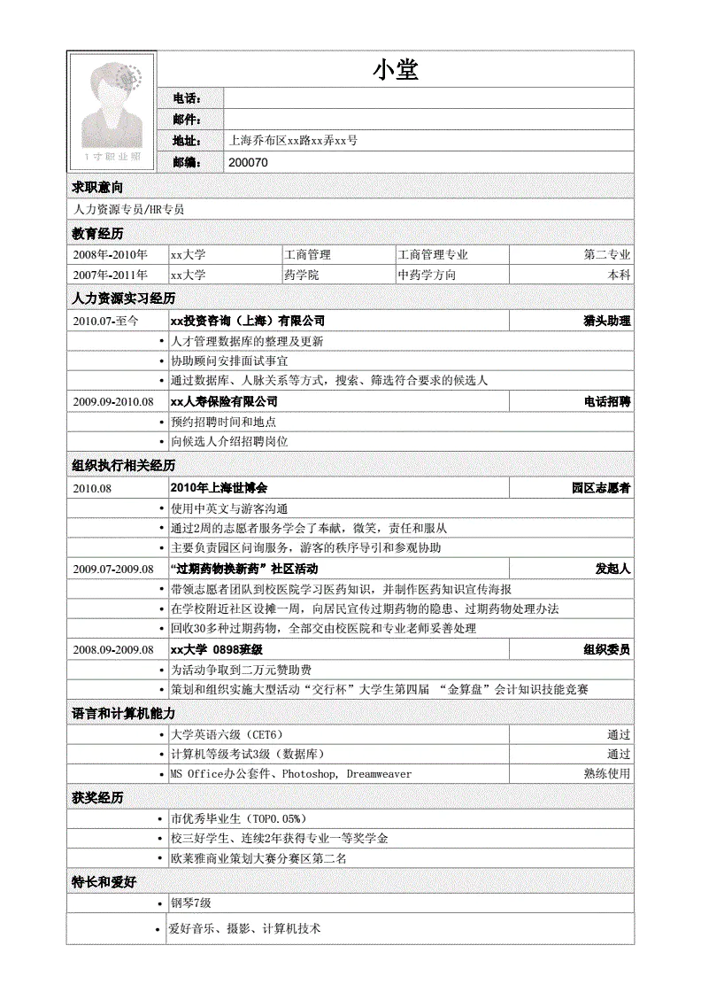 ⑤ 一定要放照片,用正装照显得更正式:让简历活起来的一个关键在于真人照片,一张大方得体的正装照可以给HR留下专业的第一印象