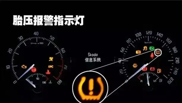 现在大多数车型都配备有胎压监测系统(有些是加装的),用以时刻监测车辆轮胎压力是否正常。当车辆的轮胎胎压出现问题时,胎压报警灯便会点亮。若胎压报警灯点亮时,表示轮胎胎压异常,最好先停车检查是什么原因导致胎压出现问题;查明原因及时修复,以避免事故隐患。