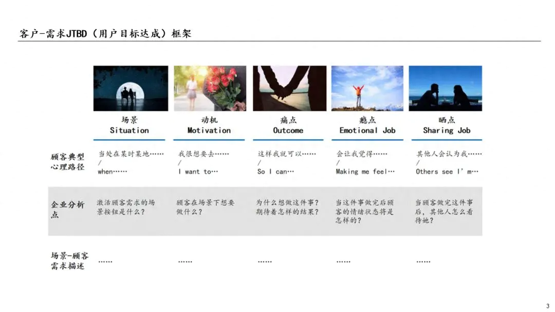 而在实战中,更好地对需求进行梳理,来自对用户目标达成理论(job-to-be-done,JTBD)的运用。所谓用户目标达成理论,其主要方式是将客户需求转换成清晰的场景和价值,从而完成客户需求的梳理与挖掘。