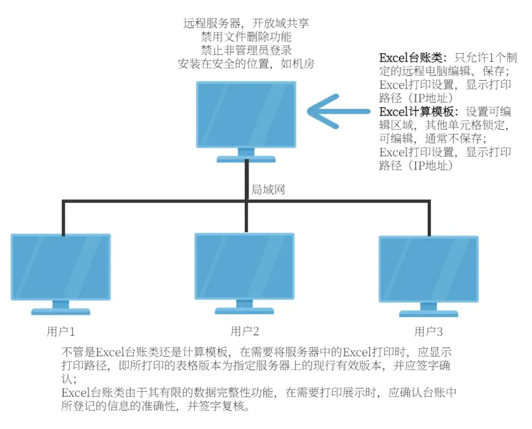 l用户对存放EXCEL网络共享(或专用电脑)中的文件读取方式不应为下载到本地打开使用(FTP不被接受)
