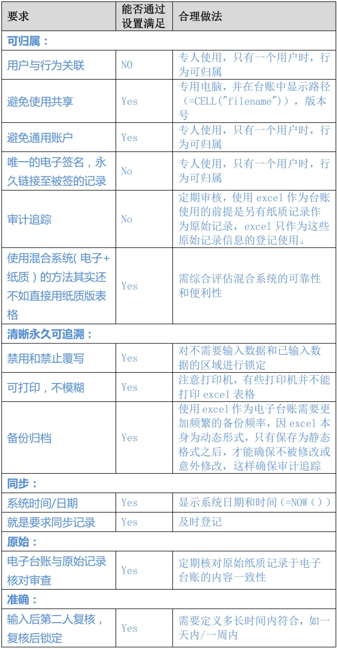 有关使用EXCEL作为台账登记的数据完整性评估和合理做法罗列如下: