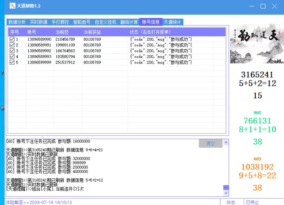 软件集数据库分析、手打群控、群控挂机、智能追号、批量抽卡、实时数据、翻倍计算、长龙提醒等等功能。
