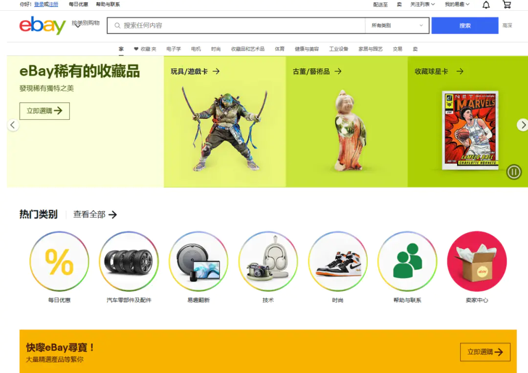 eBay也是老牌的全球跨境电商平台了,面向全球市场,2022年的月访问量为17亿。
