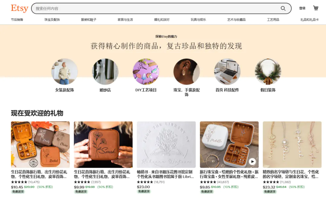 Etsy成立于2005年,是一个以原创手工品买卖为主要特色的跨境电商平台,面向全球市场,月访问量是3.9亿。