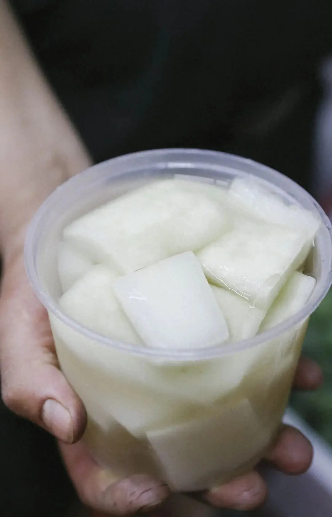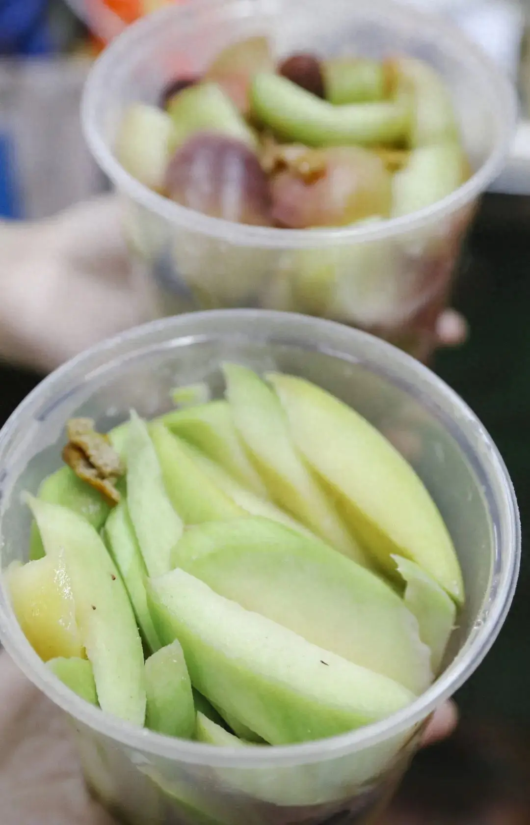 ▲彼时夜晚10:30,现切的杨桃正泡着盐水