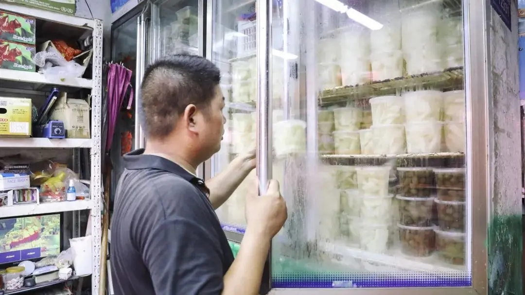 在门店的左侧,一个“破旧”的冰柜低调的藏在角落,却难逃每天被开关无数次的命运。