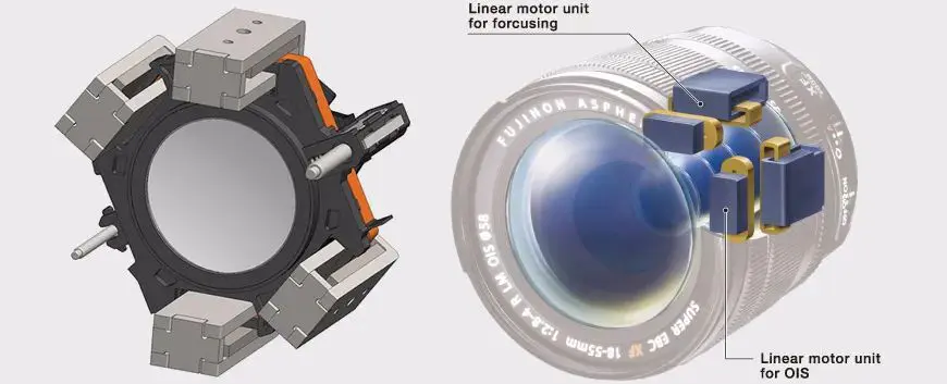 值得一提的是,一款镜头中可能会有多个线性对焦马达。同时,线性对焦马达也可以用来控制防抖机构。