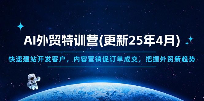 AI 闪电做外贸训练营(更新至 25 年 4 月),是一门面向外贸新手的实战课程,能帮助学员快速掌握外贸全流程技能。课程内容涵盖从独立站建站到客户开发、内容营销及订单成交等各个环节,通过 AI 技术提升效率,如快速设计 catalog、logo、slogan,短时间内找到大量目标客户等。具体包括利用大数据选品和 AI 品牌设计营销,通过搜索引擎、社媒等渠道批量精准开发客户,撰写高价值开发信及跟进流程,以及砍价逼单博弈和 AI 谈判军师等技巧。同时,课程还涉及苹果手机快速注 C 美区 ID、解决海外社媒验证码问题、AI 工具包使用等实用技能,帮助学员解决实际操作中的问题