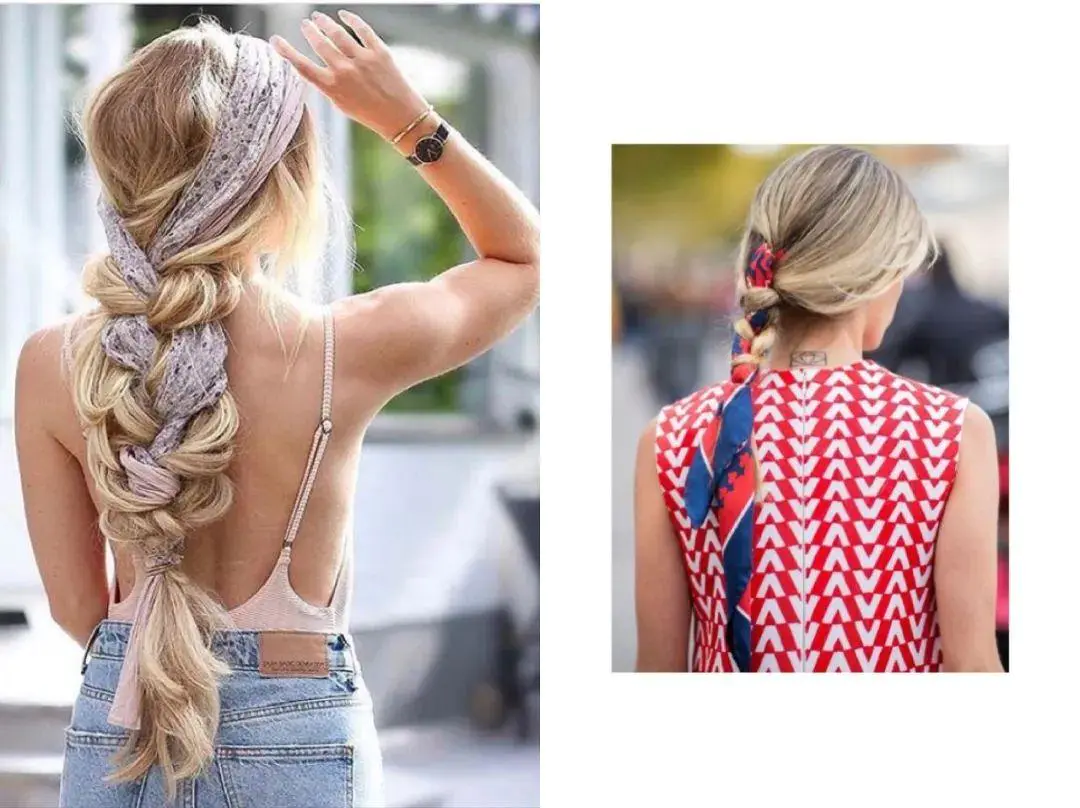丝巾与发辫交缠出一份浪漫,瞬间美化身后造型,行走飘逸!