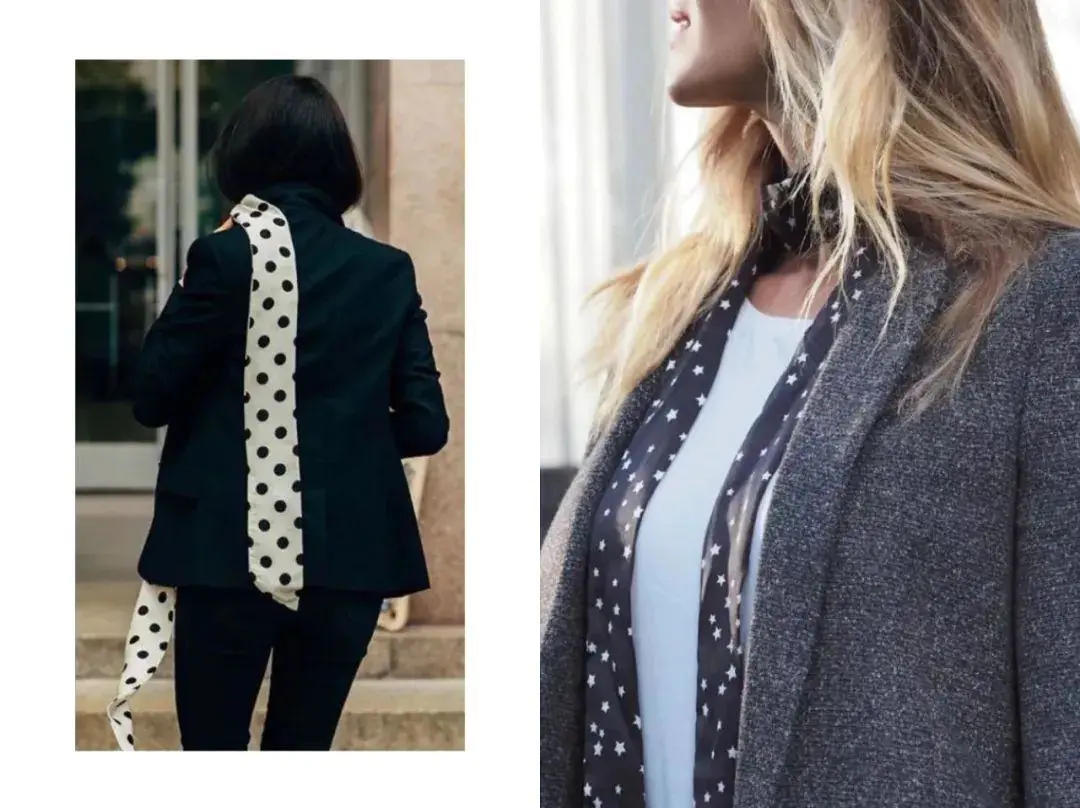 但是Skinny Scarf除了垂坠而下,当领结或领巾扎起来会显得更有气场!