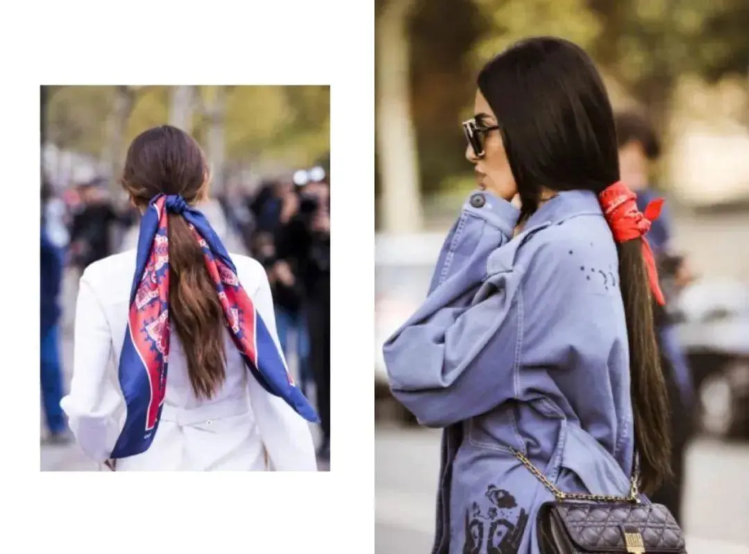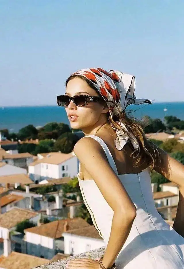 丝巾从某种程度来说,甚至是烘托法式风情的必要条件!丝巾边角与发丝随风飘扬,再来副墨镜赋予的小酷劲儿,轻摇滚范儿迎面而来!没错,一条柔情似水的丝巾或许也能成为你打造摇滚风的穿搭利器!