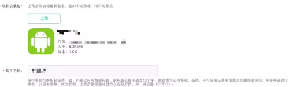 平台将会进行审核,并拥有删除、修改权利,上架后副标题将显示在名称后面,如:浏览器(OPPO),而且还是读取安装包的标题,这就要求你每次更改标题的名称的时候,都要更新一下版本才行。