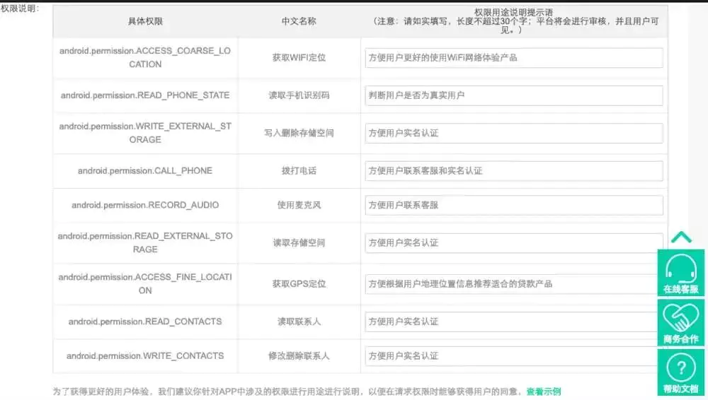 因为在安卓p版本(就是安卓最新的版本)发布之后,对于用户的隐私这一块表现的更加重视,所以像安卓应用商店中的华为、OPPO,都需要开发者去填写产品获取用户的权限的目的是什么。