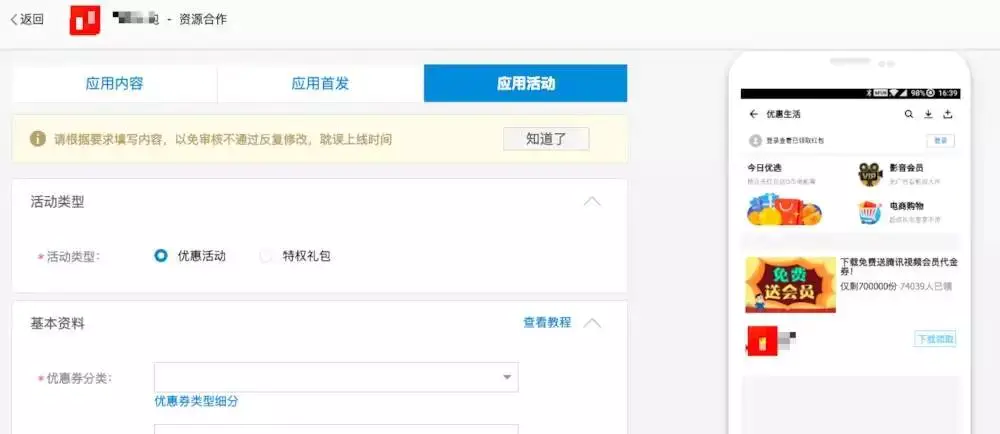 这个是在后台可以直接申请的,展示的地址是在应用宝的每日优惠。具体的规则如下:%E4%BC%98%E6%83%A0%E6%B4%BB%E5%8A%A8%E5%8F%8A%E8%90%A5%E9%94%80%E6%8A%80%E5%B7%A7